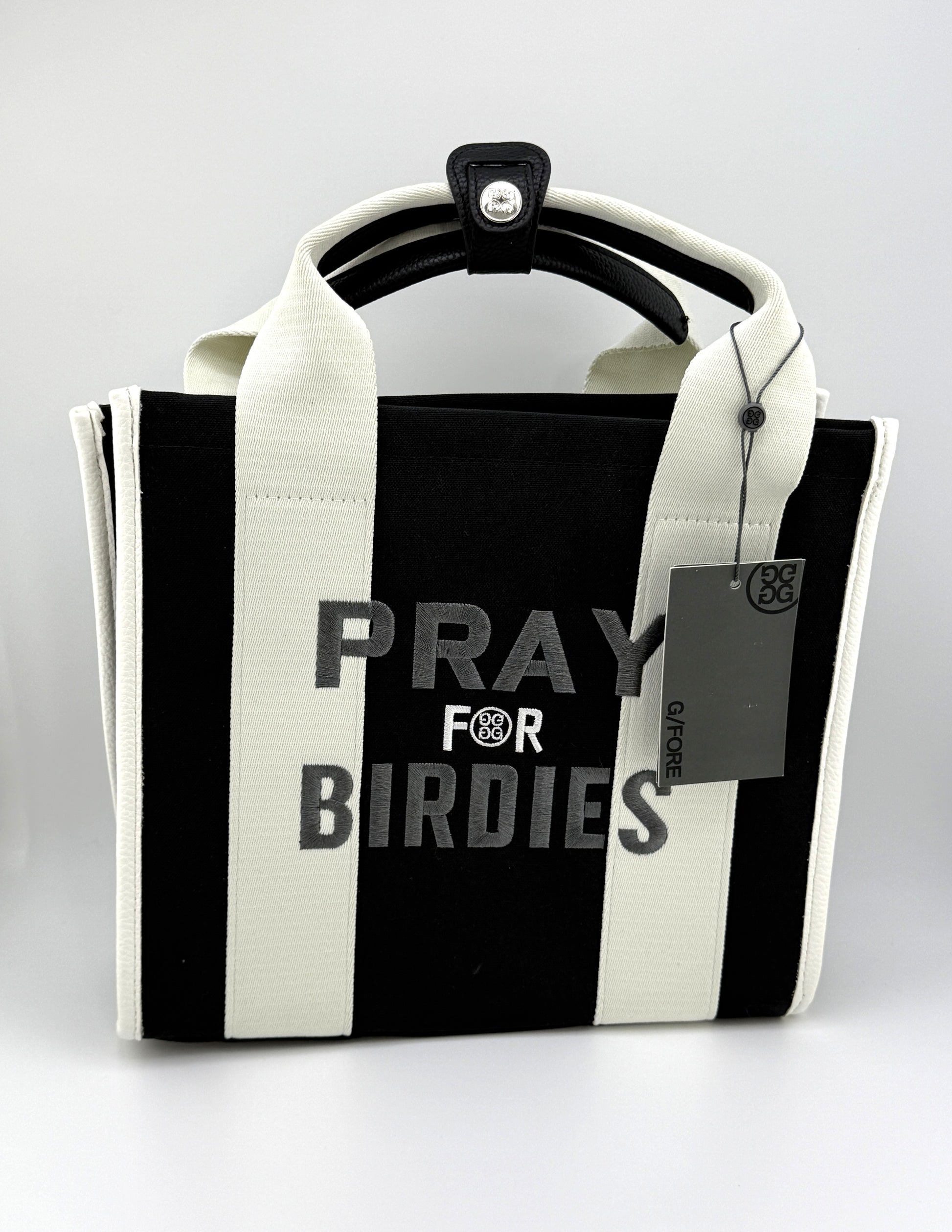 G/FORE PRAY FOR BIRDIES Square Bag Black Canvas Tote Bag with Shoulder Strap